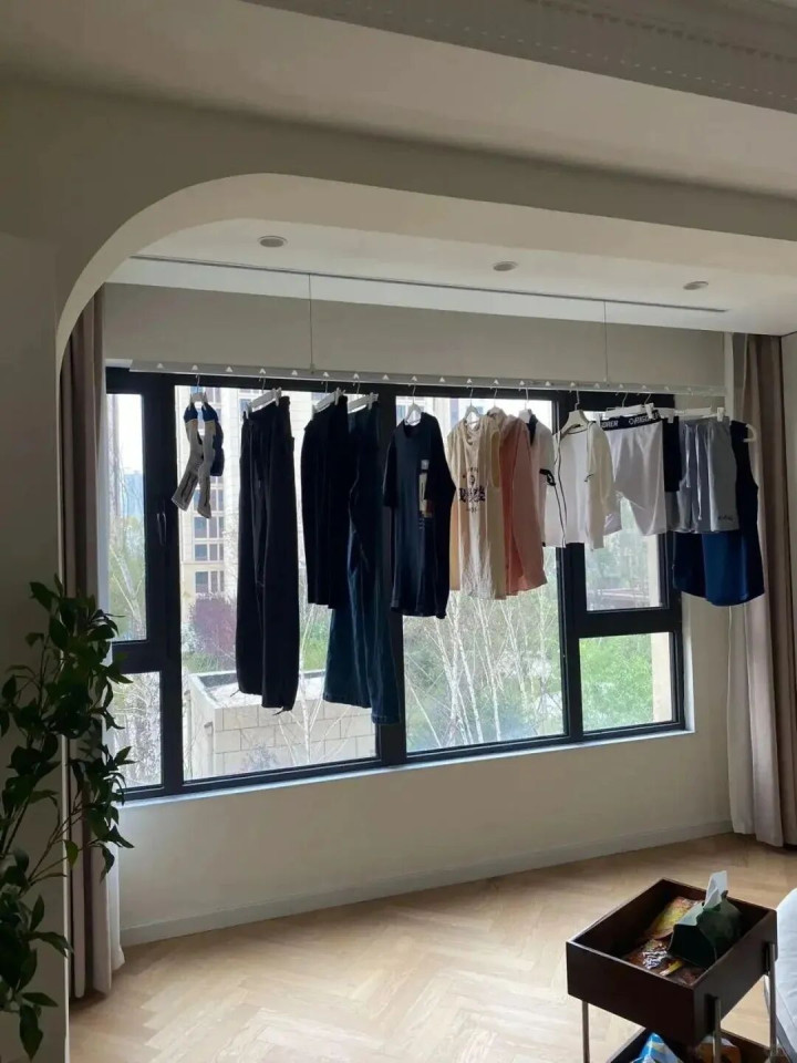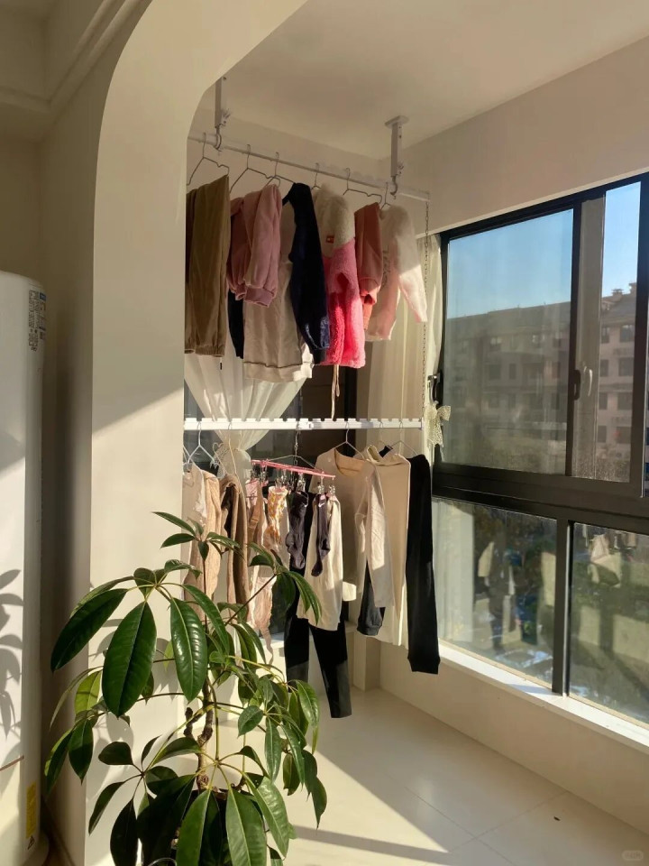 谁规定晾衣架一定要装在阳台正中间?传统的晾衣方式,直接把阳台的光线挡得严严实实,想在阳台晒个太阳、喝个茶都没戏。