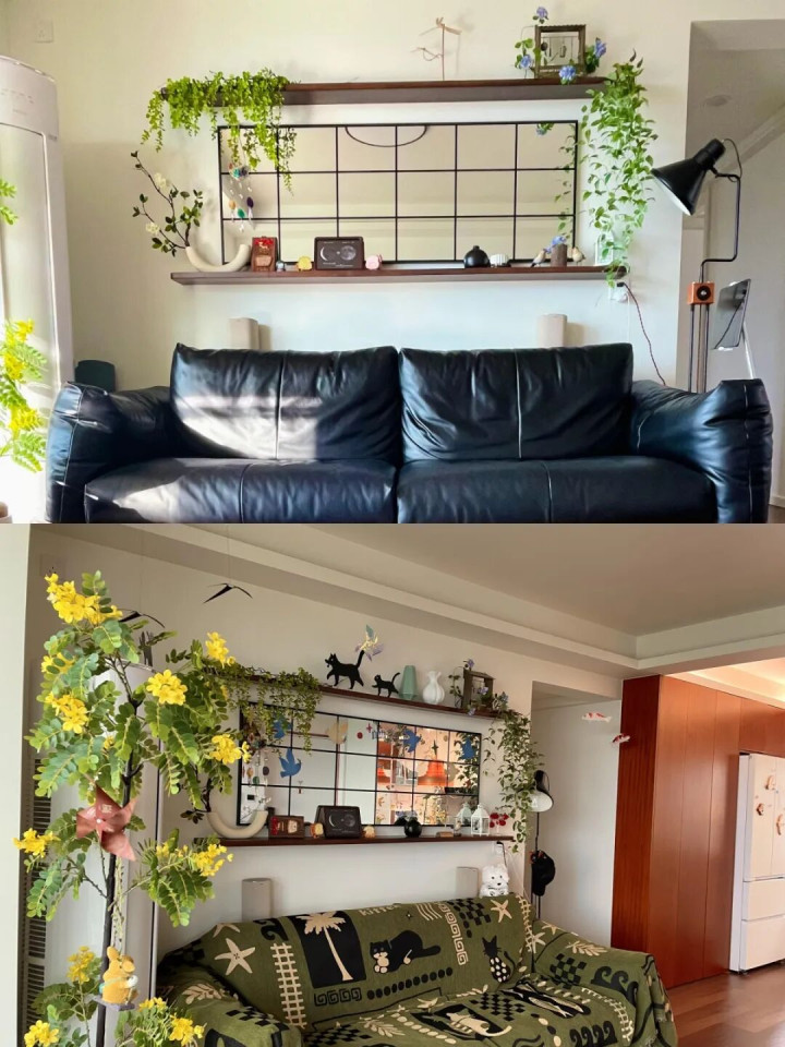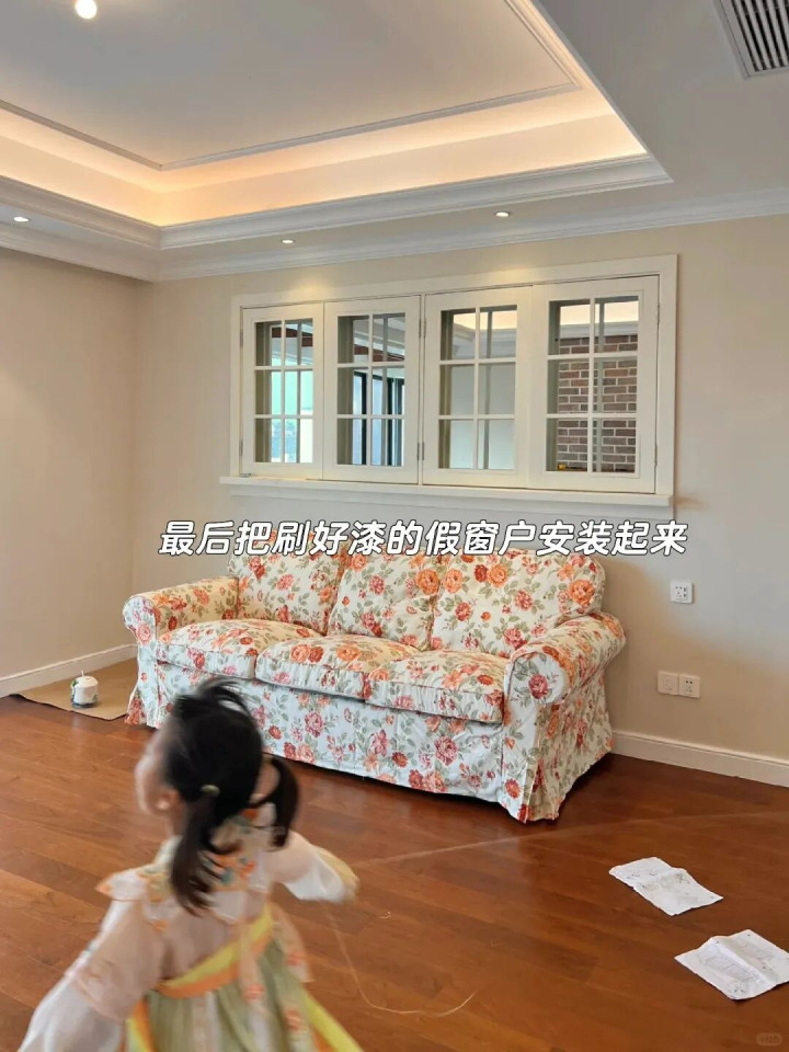 我家客厅的空墙,装了假窗后,视觉上瞬间大了一倍。假窗里面加一个镜子,看起来就像真的一样,朋友都以为我家客厅这边还有个窗户呢。