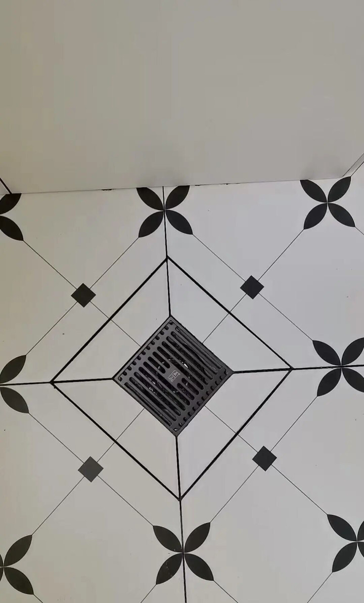 我家是小花砖,地漏配黑色美缝,简直绝配,简约又高级,朋友来我家都说这美缝小众又好看。