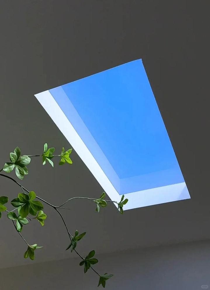 走廊采光不好,装了晴空灯后,瞬间变成小清新角落。每天下班回家,看到这片“蓝天”,心情都变好了,再也不是黑漆漆的走廊了!