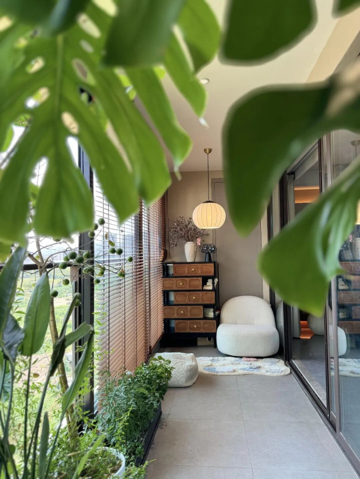 半封阳台简直是养花人的福音,封闭的部分可以放沙发、垫子,喝茶看书有了地方。