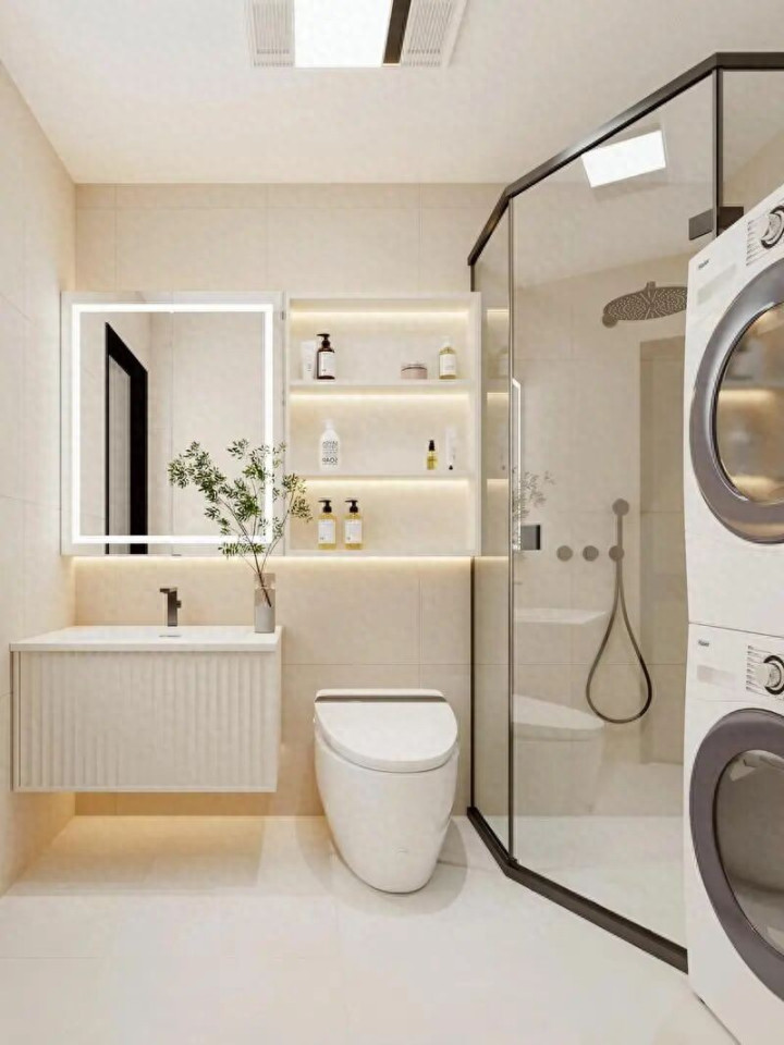 小卫生间,浅色为王。用米白、浅灰等墙色提亮、放大空间。