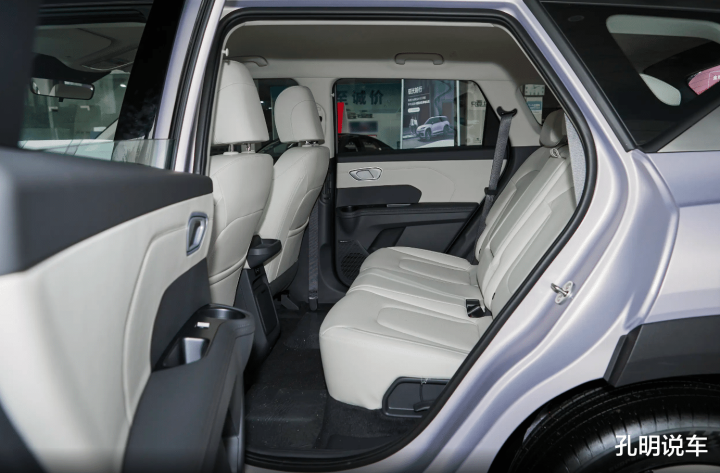 产品级别定位确实是紧凑级suv的水平,轮廓尺寸看起来不算很大,车身长度只有4615mm,但是宽度1875mm,特别是轴距做到2750mm,这相比传统市场的主流燃油紧凑级suv是要略微大一些的,比如轴距参数已经超过哈弗h6之类的车型。再加上电动化平台的利用率会比较高,空间表现方面是有亮点的,实际体验整个后排的地板都是足够平整的,而且后排空调出风口位置也并没有过度侵占位置。